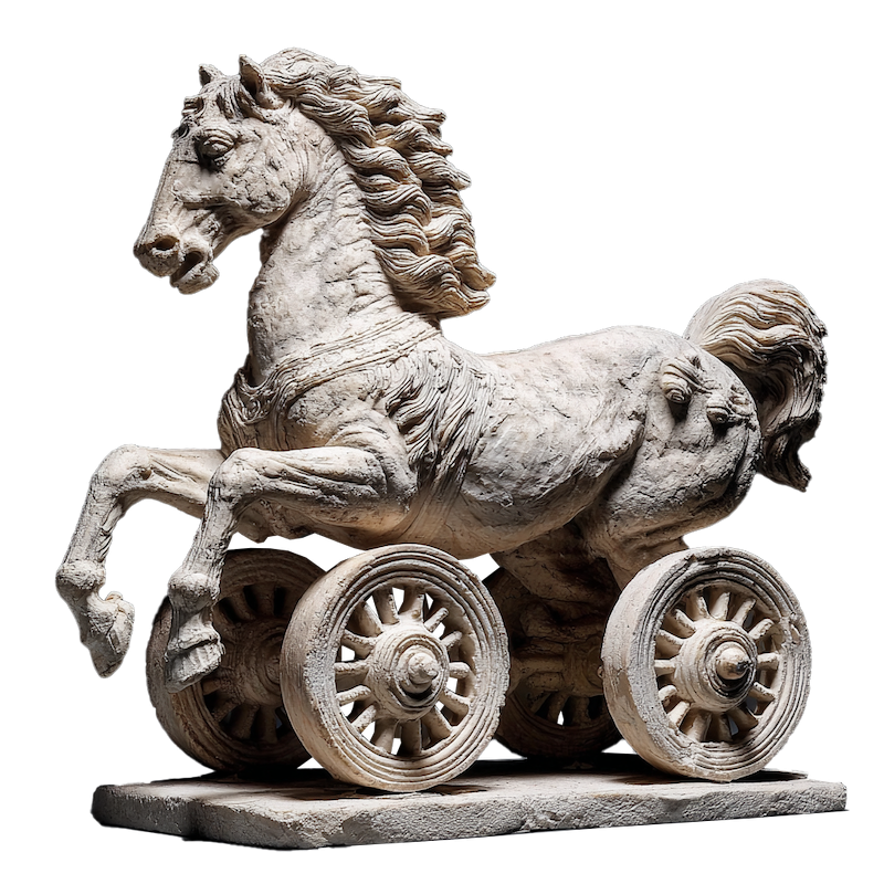 Lorem ipsum dolor sit amet consectetur adipiscing elit Ut et massa mi. Aliquam in hendrerit urna. Pellentesque sit amet sapien fringilla, mattis ligula consectetur, ultrices mauris. Maecenas vitae mattis tellus. Statue Pferd auf Rädern